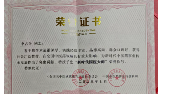 凭借深厚的学术造诣、丰富的实践经验和高尚的医德,李占全斩获 “名老中医奖”“中医药文化传承人突出贡献奖” 等多项殊荣,更被授予 “新时代国医大师”“全国名中医” 等重量级称号。如今年过花甲的他,依然坚守在诊疗一线,用一生践行着 “敬仁德,佑健康” 的初心。在中医药事业蓬勃发展的今天,李占全用三十年坚守诠释着中医的魅力,为女性全周期健康筑起坚实屏障。